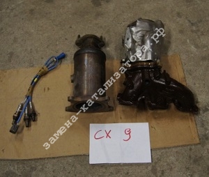 Катализатор для Мазды интегрируется в выхлопную систему и находится внутри металлического корпуса. Если машина имеет V-образный двигатель, например, Мазда CX-7 3.7 (V6), то катализаторов, как правило, два или три. Расположены они обычно сразу за коллектором или образуют с ним единое целое. Справа показан катализатор Мазда СХ-9.